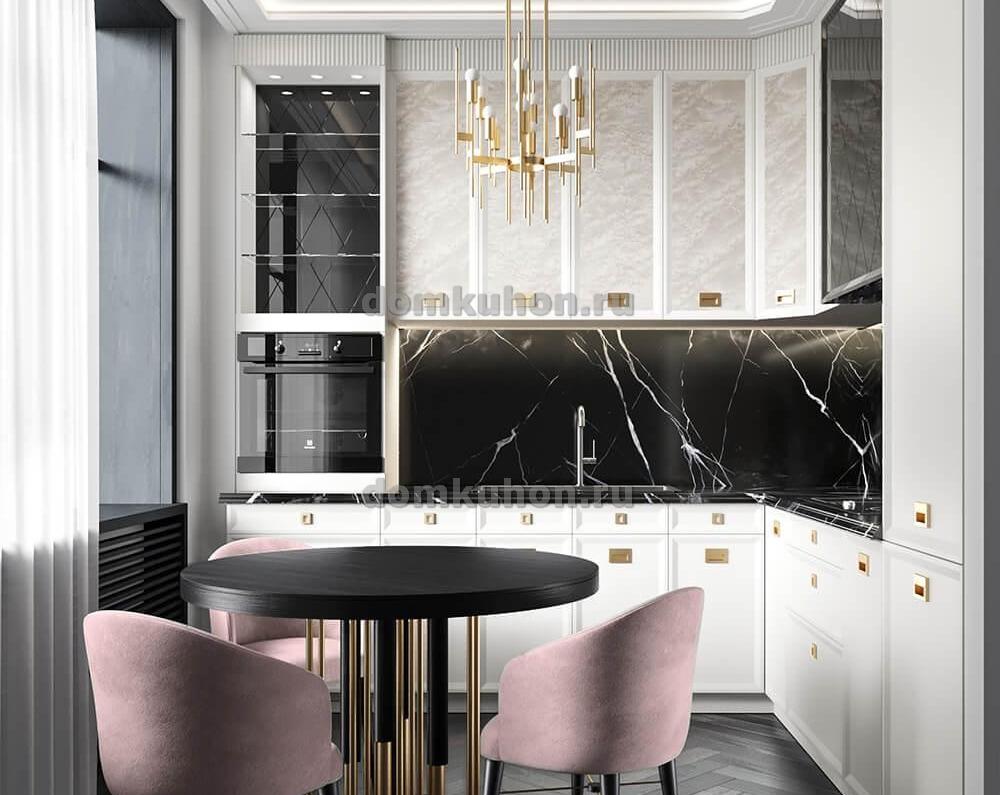 Встречайте кухню "Франческо" — воплощение изысканности и современной роскоши. Этот угловой гарнитур отличается белыми глянцевыми фасадами с золотистыми ручками и акцентами, что придает интерьеру ощущение элегантности и благородства. Столешница с эффектом черного мрамора с белыми прожилками является центральным элементом дизайна, подчеркивая безупречный вкус хозяина. Изящное освещение и высококлассная встроенная техника делают кухню "Франческо" не только прекрасным местом для кулинарных экспериментов, но и сердцем дома, где собирается вся семья. Эта кухня — истинный выбор для ценителей качества и стиля.